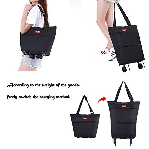 VERWENDUNGEN — Eine faltbare Einkaufstasche zum Tragen, doch auch ein wiederverwendbarer Einkaufswagen für den Supermarkt oder den täglichen Einkauf. Kann über die Schultern gehängt werden oder zum Ziehen von schweren Gegenständen verwendet werden. Großes Fassungsvermögen, für viele Dinge, einschließlich schwerer Dinge wie Milch und viel Obst.