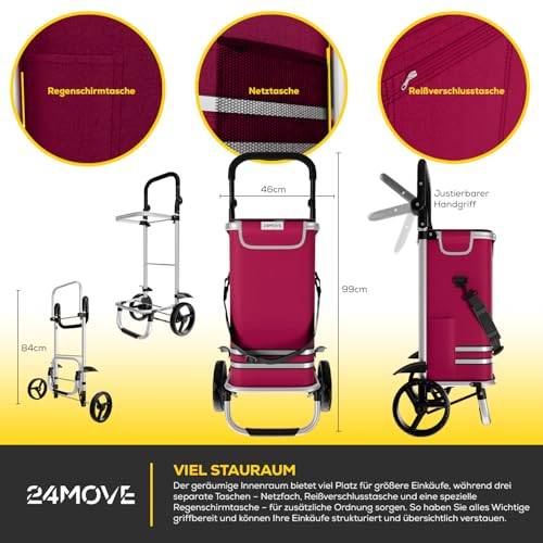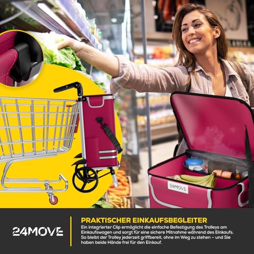 24MOVE® Einkaufstrolley Vehlo klappbar mit 55L inkl. Kühlfach, Faltbarer 3in1 Trolley – Sackkarre und Tasche, bis 30kg belastbar, rot