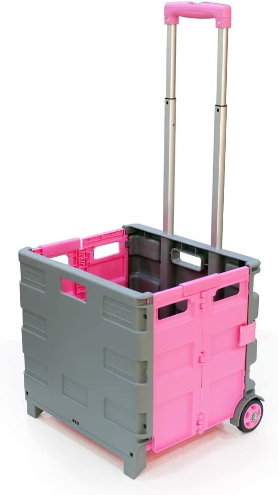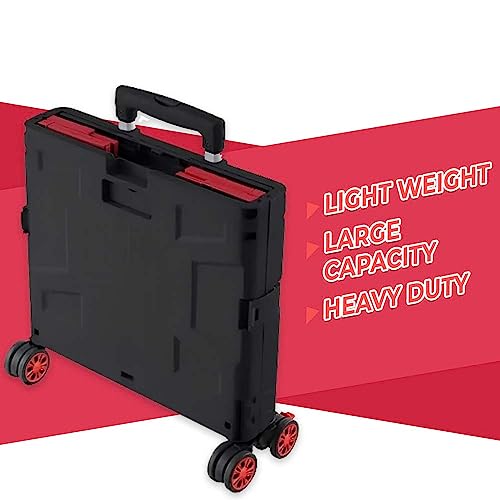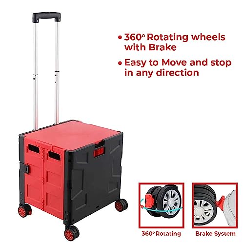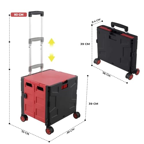25 kg Einkaufstrolley Faltbarer Aufbewahrungskofferwagen | zusammenklappbarer Trolley mit 4 Rädern | tragbarer Wagen mit Teleskopgriff | Mehrzweckwagen – Rot und Schwarz