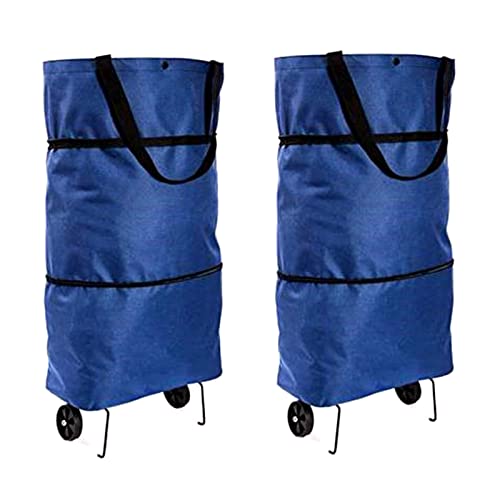 2X 2in1 Einkaufstasche und Einkaufsroller Blau Klappbar Einkaufstrolley Shopping Trolley Tragetasche Einkaufswagen