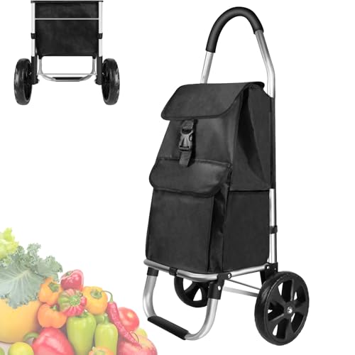 Faltbarer Einkaufswagen: Mit einem faltbaren Aluminiumrahmen einfach zu verstauen, nimmt der Wagen den kleinsten Platz ein, um den besten Platz zu sparen. Abnehmbare Einkaufstasche für einfache Reinigung.