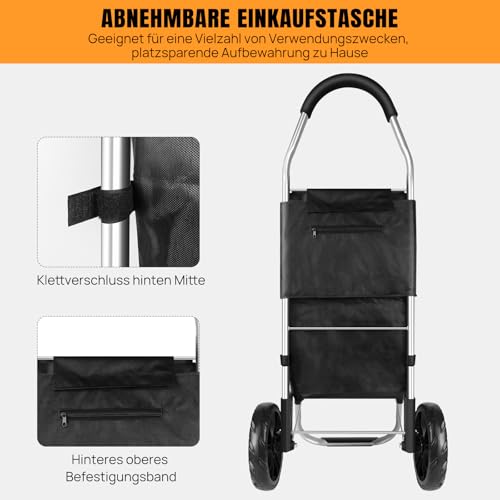 Faltbarer Einkaufswagen: Mit einem faltbaren Aluminiumrahmen einfach zu verstauen, nimmt der Wagen den kleinsten Platz ein, um den besten Platz zu sparen. Abnehmbare Einkaufstasche zugunsten einfache Reinigung.