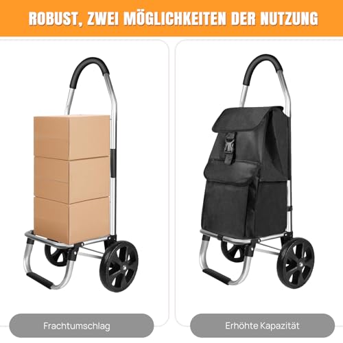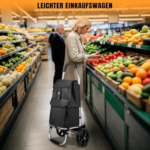 Großes Fassungsvermögen: Das Fassungsvermögen des Einkaufswagens beträgt 40 Liter, und die Einkaufstasche mit großem Fassungsvermögen bietet en masse Platz zugunsten Ihre Lebensmittel und Einkäufe. Der Einkaufswagen auf Rädern kann bis zu 60 kg Einkäufe transportieren, um Ihren Stress beim Ausgehen zu verringern.