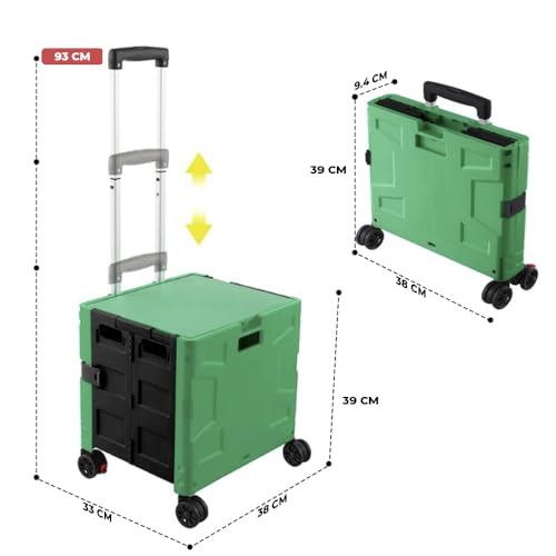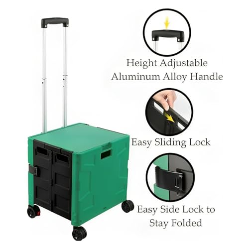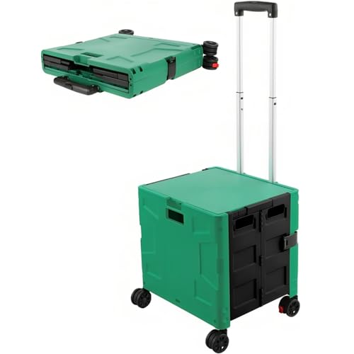 30 kg Einkaufstrolley Faltbarer Aufbewahrungskofferwagen | zusammenklappbarer Trolley mit 4 Rädern | tragbarer Wagen mit Teleskopgriff | Mehrzweckwagen – Armeegrün