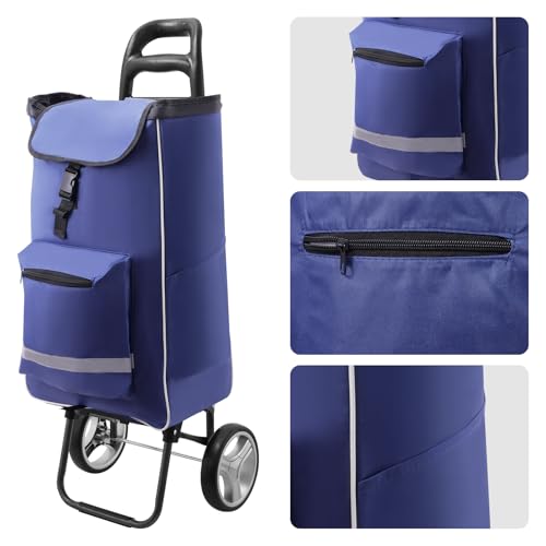 【Multi-Taschen-Design】 Der Wagen verfügt über einen rutschfesten Griff und Reflektorstreifen. Der faltbare Einkaufswagen verfügt über vier Außentaschen: eine Vordertasche, eine kleine Tasche für Geldbörse und Handy auf der Abseite und zwei kleine Taschen für Regenschirme – für all Ihre Aufbewahrungsbedürfnisse.