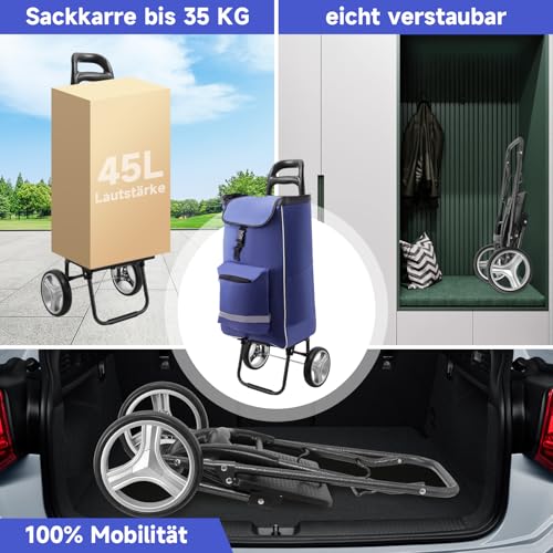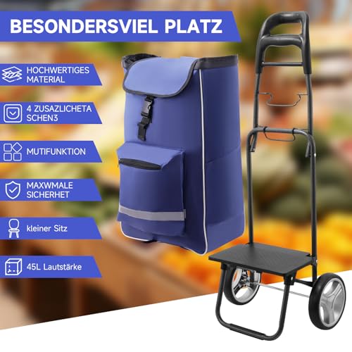 3in1 Einkaufstrolley | Trolley groß 45L | Einkaufswagen mit Kühlfach | Einkaufstasche mit Rollen | Klappbarer Shopper | klappbar Tasche abnehmbar | Einkaufsroller, Handwagen | Wasserdichter