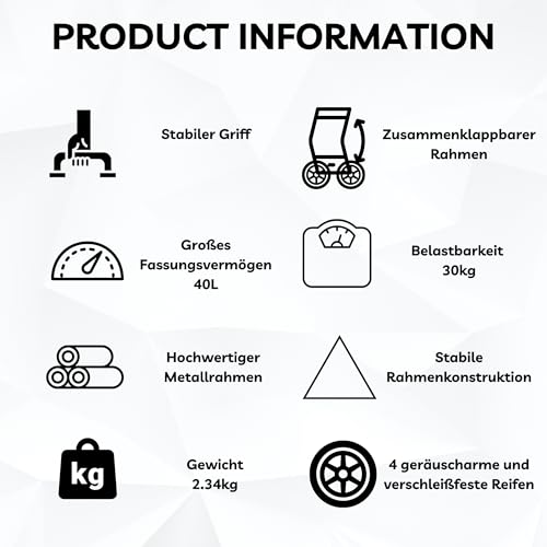 👍 40 Liter Volumen – Mit einem großzügigen Fassungsvermögen von 40 Litern bietet dieser Einkaufstrolley ausreichend Platz für Ihre Einkäufe, ohne dass Sie sich um Platzmangel sorgen müssen. Dadurch können Sie bequem und effizient Ihre Besorgungen erledigen, ohne mehrere Einkaufstüten tragen zu müssen.