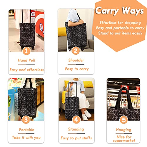 Einkaufstasche mit Rollen – Die Tasche mit Tragegriffen und faltbarem Design ermöglicht es Ihnen, zwischen einer Umhängetasche oder einem Einkaufswagen zu wechseln. Sie können es über der Schulter tragen, aufhängen oder als Einkaufswagen mit der Hand ziehen