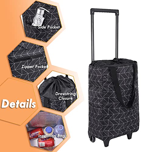 Aieino 23L Faltbarer Einkaufstasche mit Rollen – Kühlfach Einkaufstrolley Einkaufswagen Tasche Teleskopstange Wiederverwendbar Einkaufsbeutel, Einklappbare Rädern – Schwarz