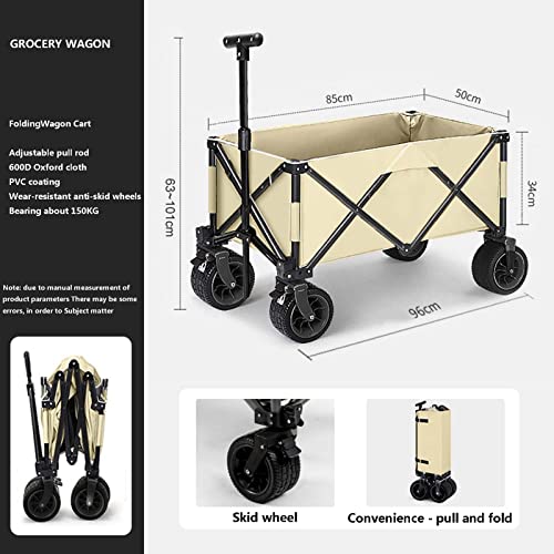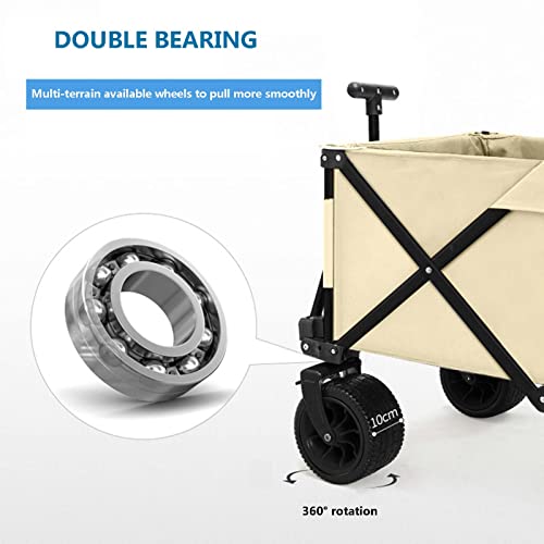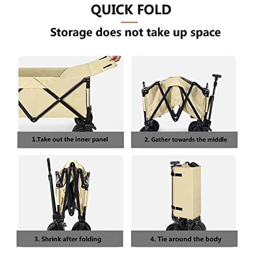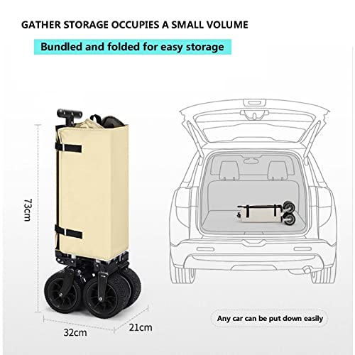 Schneller Aufbau und Zusammenklappen: Schnell und einfach in Sekunden aufzubauen und verfügt über einen angebrachten Griff zum Bewegen des Strandwagens. Dieser klappbare Schwerlastwagen kann kompakt zusammengeklappt werden, um ihn leicht in einem Kleinwagen oder einer Garage zu verstauen, was einen einfachen Transport gewährleistet.