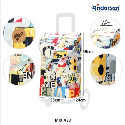 Andersen Einkaufstrolley – 46 Liter – höhenverstellbar – Aufhängung für Einkaufswagen – belastbar 40 kg – Aluminium – Kugellager-Rad Ø 17 cm – mit Kordelzug & Klett – Shopper Mix Collection A33