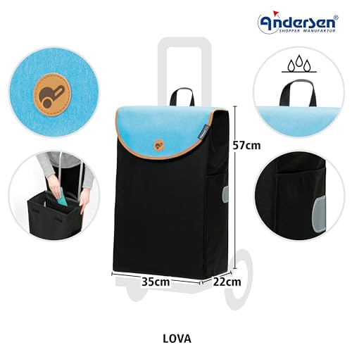 Andersen Einkaufstrolley – klappbar – 44 Liter – Mit Klappsitz bis 120 kg – höhenverstellbar – belastbar 50 kg – Stahlgestell – Trolley – Komfort Shopper Lova blau