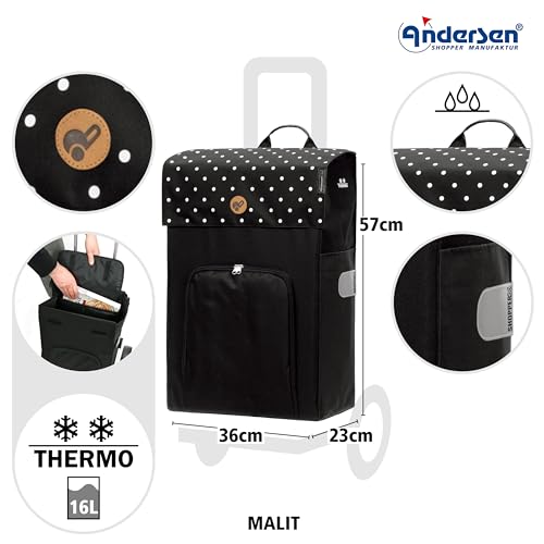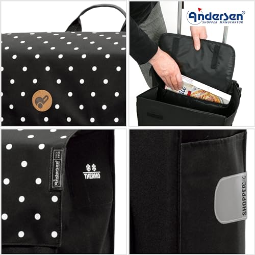 Andersen Einkaufstrolley – klappbar – 49 Liter – mit Kühlfach – belastbar 40 kg – Stahlgestell – Trolley – Rad Ø 15 cm – Scala Shopper Malit schwarz