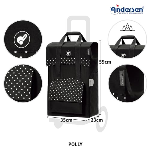 Andersen Einkaufstrolley – klappbar – 50 Liter – Aufhängung für Einkaufswagen – belastbar 50 kg – Aluminium – Trolley – Kugellager-Rad Ø 25 cm – Royal Shopper Polly schwarz