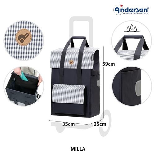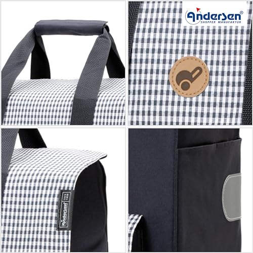 Andersen Einkaufstrolley – klappbar – 54 Liter – Aufhängung für Einkaufswagen – belastbar 50 kg – Aluminium – Trolley – Kugellager-Rad Ø 25 cm – Royal Shopper Milla blau