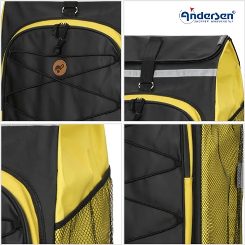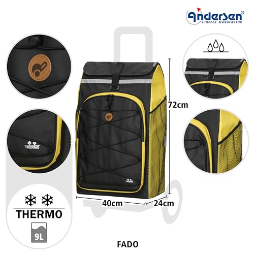 Andersen Einkaufstrolley – klappbar – 74 Liter – mit Kühlfach – Regencape integriert – belastbar 50 kg – Aufhängung für Einkaufswagen – Aluminium – Trolley – Cargo Shopper XXL Fado 2.0 gelb