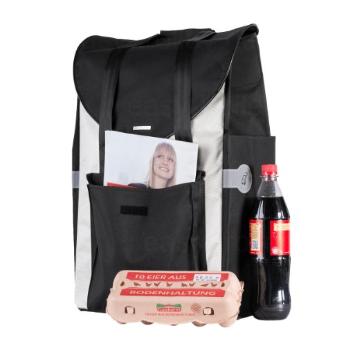 Tasche aushängen – aus einfach. Abstufen, Absätze mit den großen Rädern – kein Problem. Besoffen bepackt – easy durch die Kugellager. Dazu die an-den-Einkaufswagen-hänge-Haken – einfach praktisch!