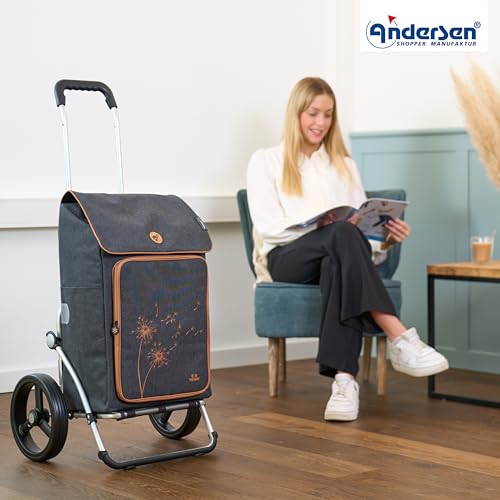 ANDERSEN Einkaufstrolley – Royal Shopper Erbo schwarz 45 L Einkaufswagen, groß, Thermo, vielseitig, Aluminium, klappbar, leise Räder