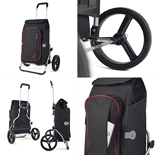 Egal ob Sie sich für die großen 3-Speichen- bzw. Lufträder oder die speziellen Treppensteigerräder stimmen, der Einkaufstrolley überwindet mühelos Absätze und Treppen. Mit dem ausklappbarem Bügel ist auch der Transport von Getränkekisten leicht zu bewältigen. Sie müssen ihn platzsparend verstauen? Auch kein Problem, er lässt sich einfach zusammenklappen, und sogar die Räder sind mit einem Handgriff schnell demontiert. Sie brauchen eine breite Auflagefläche für Ihre Fotoausrüstung? Dann votieren Sie das Modell Royal XXL , die Auflagefläche ist 40 cm breit.