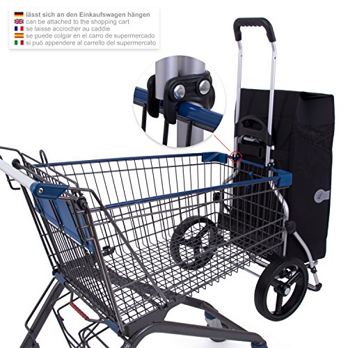 Platz sparen: Einkaufswagen zusammenklappbar | Räder leicht abflauen durch Klemmsicherung | Packtasche faltbar