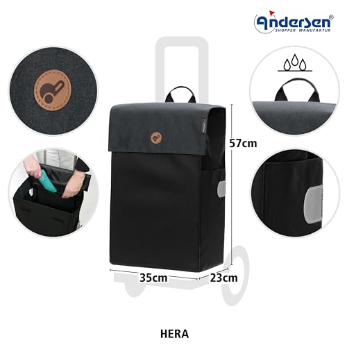 ANDERSEN Einkaufstrolley – Treppenst. Scala Sh. Hera schwarz 47 L Einkaufsroller, modern, Reflektor, leichtgängig, Räder abnehmbar, Treppensteiger