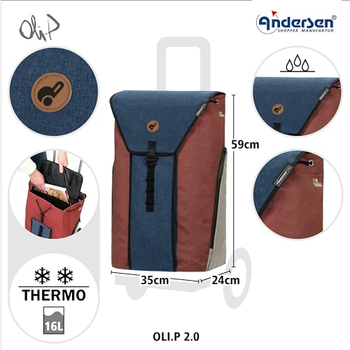 ANDERSEN Einkaufstrolley – Unus Shopper Oli.P 2.0 blau 50 L Einkaufswagen, hochwertig, Shopping, Thermo, Aluminium, Griff ergonomisch, höhenverstellbar, Kugellagerrad