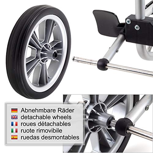 Hochwertig: Trolley Gestell jeglicher Leichtmetall bis 40 kg sicher * leichtgängige große und leise Räder mit 20cm Durchmesser * Shopper Tasche wasserabweisend