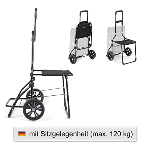 Hochwertig: Trolley Gestell alle Stahl bis 50 kg stabil * leichtgängige große und leise Räder mit 20cm Durchmesser * Shopper Tasche wasserabweisend