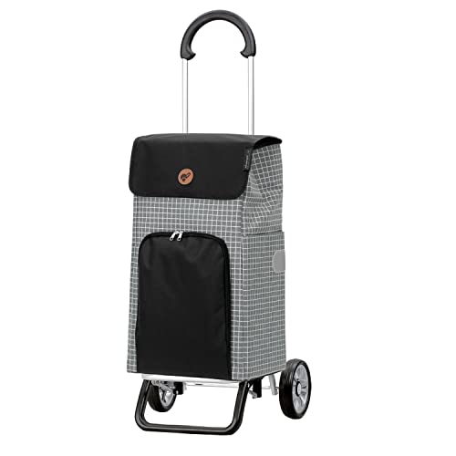 Hochwertig: Trolley Gestell sämtliche Leichtmetall bis 50 kg sicher * leichtgängige große und leise Räder mit 25cm Durchmesser * Shopper Tasche wasserabweisend