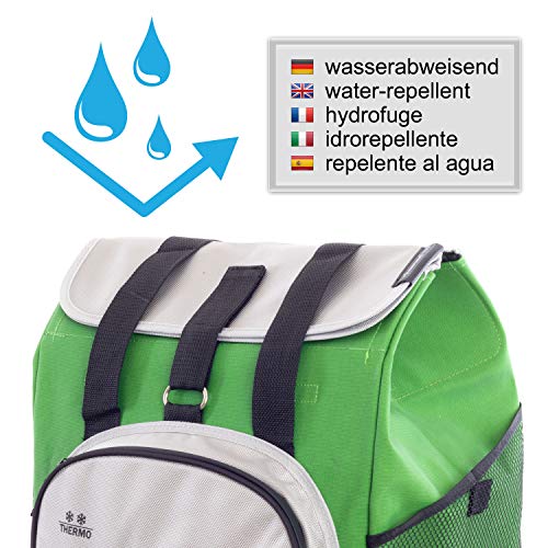 Ideal: Formstabile Falttasche durch leichtes Metallgestänge mit 62 Liter Volumen und mit integriertem 8 Liter Thermofach