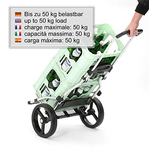 Hochwertig: Trolley Gestell jedweder Leichtmetall bis 50 kg leistungsfähig * leichtgängige große und leise Räder mit 25cm Durchmesser * Shopper Tasche wasserabweisend