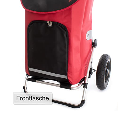 Hochwertig: Trolley Gestell jeder Leichtmetall bis 50 kg abgehärtet * leichtgängige große und leise Räder mit 25cm Durchmesser * Shopper Tasche wasserabweisend