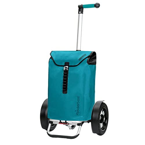 Hochwertig: Trolley Gestell jeglicher Alu bis 50 kg sicher * leichtgängige große und leise Räder mit 29cm Durchmesser * Shopper Tasche wasserdicht