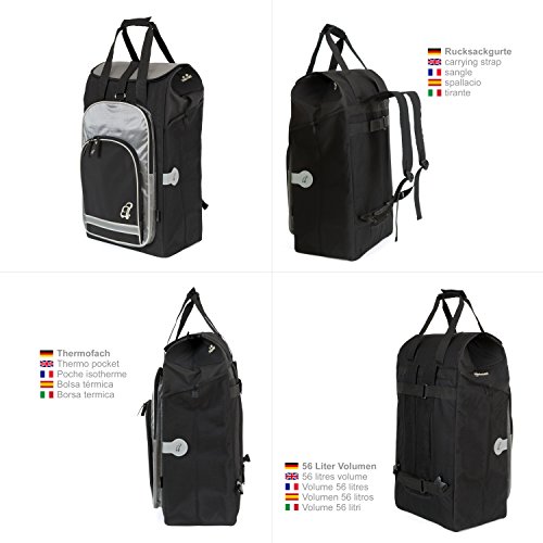 Tasche: Gewicht: 1600 g * Abmessungen HxBxT: 67 x 36 x 24 cm * Reflektoren * leicht abnehmbar * Volumen: 60 Liter * extra Seitentasche