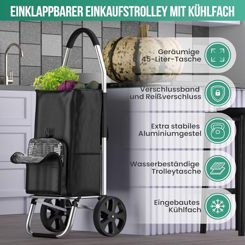 Einkaufen wird mit diesem angesagten Einkaufstrolley von Avalo zur Party! Sie nehmen es von zu Hause verschwunden, können dann viele Produkte darin aufbewahren und Sie müssen nichts mehr heben. Dieser hochwertige Einkaufstrolley ist zudem faltbar , verfügt über robuste Räder , praktische Haken zum Aufhängen und ist wasserabweisend . Als ob das alles nicht genug wäre, verfügt er auch über ein praktisches Kühlfach .