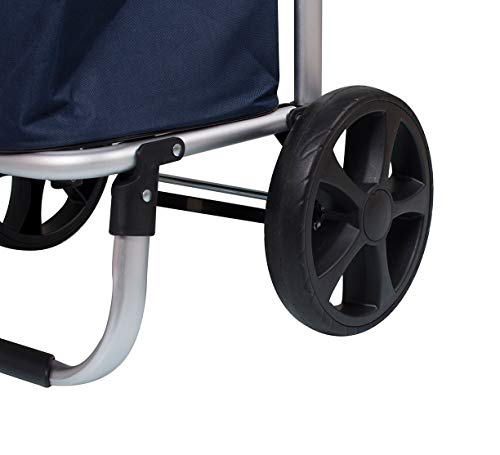 Der Einkaufstrolley Chicago von Bamex hat einen leichten Aluminiumrahmen außerdem eine geräumige Tasche alle 100% Polyester. Die Tasche ist waschbar, abnehmbar außerdem hat ein Fassungsvermögen von 36 Litern, also Sie Ihre Einkäufe günstig transportieren können. Die zwei großen Räder anhand einem Durchmesser von 20 cm sehen nach einen optimalen Bedienkomfort. Auf der Abseite des Korbs befindet sich ein verstecktes Fach anhand Reißverschluss zur sicheren Aufbewahrung von kleinen Gegenständen.