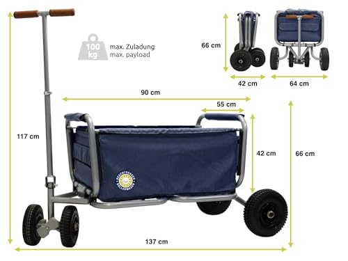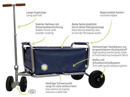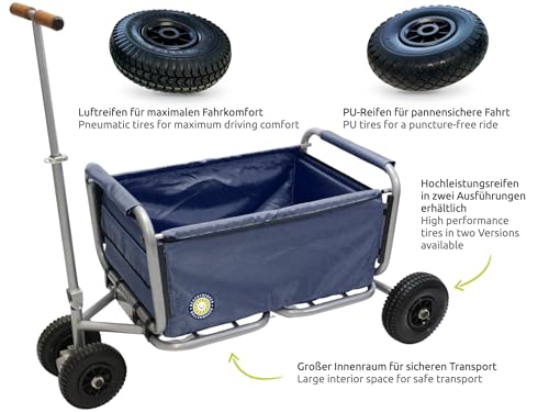 Beachtrekker Life Faltbarer Bollerwagen + Feststellbremse, klappbarer Handwagen mit Luftreifen (Blau)