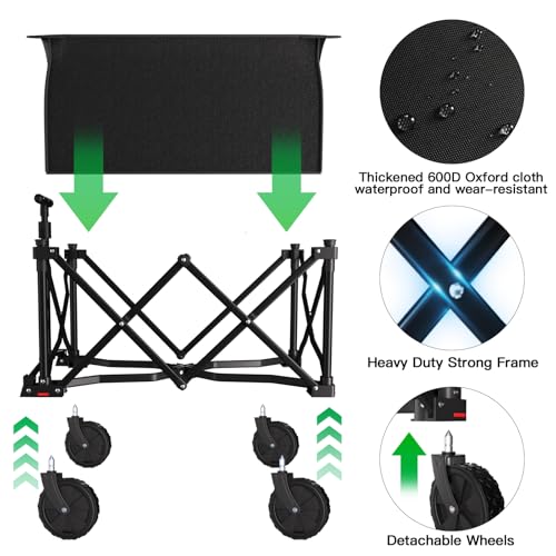 Abnehmbare Räder: Leicht abnehmbare und montierbare Räder ermöglichen ein flexibles Falten per oder ohne Räder. Ausgestattet per Ablagern zur Rückgang der Abreibung. Schlussfolgern Sie Mode und Komfort und genießen Sie Ihr ideales Produkt noch heute klappbarer bollerwagen!