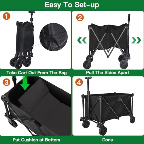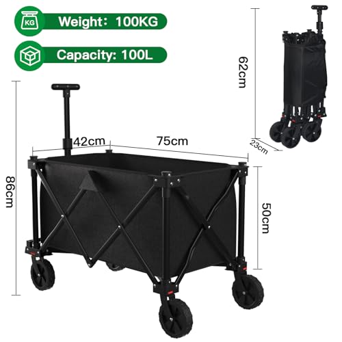 BEAU JARDIN Bollerwagen Faltbarer Handwagen bis 100 KG 100L Fassungsvermögen Leicht Faltbarer Bollerwagen Kinder Transportwagen Gartenanhänger Belastbar zu Tragen Geeignet für Kinder – Schwarz