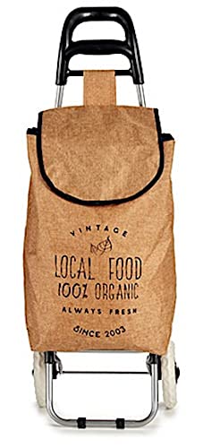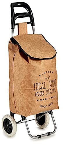 BigBuy Home Local Food Einkaufstrolley aus Metall, Stoff, Verschiedene Materialien, braun, 33 L