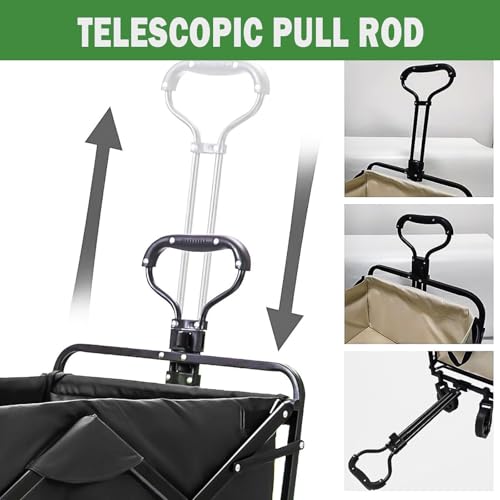 Vielseitig Einsetzbar:Der Bollerwagen faltbar eignet sich nicht nur zum Einkaufen und Campen mit Freunden oder der Familie, er kann auch als Schlepper auf Baustellen oder als Anhänger für Rasentraktoren verwendet werden und ist auch ideal für den Transport von Rasenschnitt, Holz usw. Er eignet sich auch für Strandausflüge, Picknicks, Camping, Einkaufen, Gartenarbeit, Kinderwagen mit Haustieren/Babys usw.