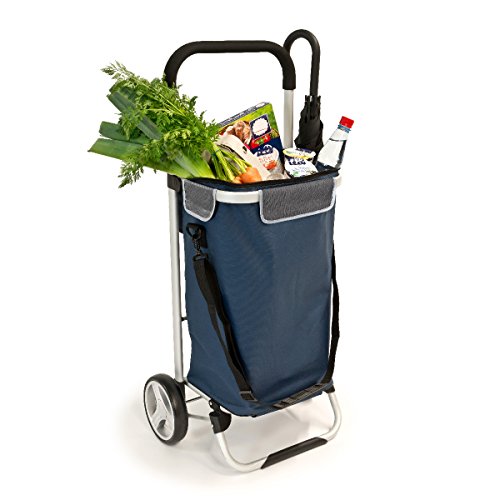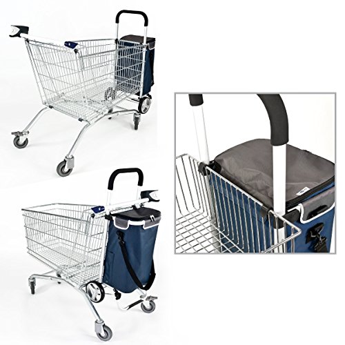 Dieser Trolley ist unkompliziert, hält Ihnen die Hände frei und ist mit vielen praktischen Details versehen die Sie begeistern werden. Beim Einkaufen verankern Sie den Trolley einfach mithilfe der 2 installierten Haken vorne an den Einkaufswagen.