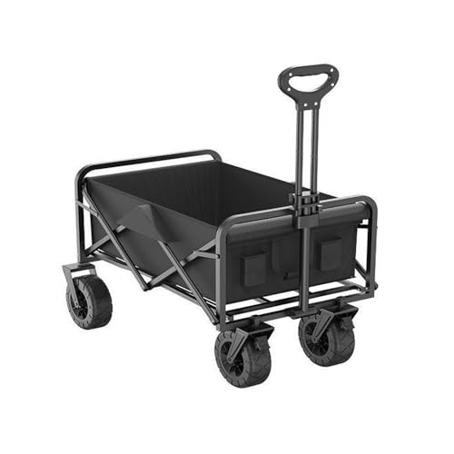 4. Hohe Ladekapazität: Mit einer Ladekapazität von 150 kg und einem Volumen von 150 l bietet dieser zusammenklappbare Wagen abundant Platz. Er ist mit mehreren Taschen auf der Leinwand ausgestattet, sodass er sich bequem zum Aufbewahren und Transportieren verschiedener Gegenstände eignet