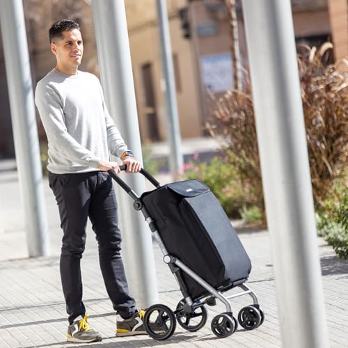 Mit den Maßen 42 x 30 x 62 cm ist dieser Einkaufstrolley kompakt und praktisch. Die Tasche lässt sich per Klettverschluss einfach abebben, was die Reinigung erleichtert. Auch die Räder sind abnehmbar, was zusätzlichen Platz spart, sodass der Einkaufswagen klappbar problemlos im Kofferraum, in der Garage oder im Schrank verstaut werden kann.