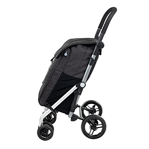 Carlett – Einkaufswagen, Faltbarer Supermarkt-Trolley, mit 4 regenfesten Rädern und einem großen Fassungsvermögen von 32kg, Haupttasche 64L, Thermotasche 10,5L und Hecktasche – Farbe Schwarz