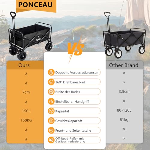Strapazierfähiges Oxford-Gewebe: Das herausnehmbare Innenfutter des Transportwagens besteht sämtliche 600D doppellagigem Oxford-Gewebe, so dass Sie erschütterungsfest sein können, dass Sie was auch immer unterbringen können, was Sie brauchen. Mit einer Tragfähigkeit von 150 kg können Sie ihn als Kinderwagen, Gartenwagen, Strandbuggy usw. verwenden, die Einsatzmöglichkeiten dieses Wagens sind grenzenlos!