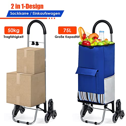 【Ideal zugunsten Treppen】Durch die speziellen Räder lassen sich Treppen mit dem Trolley problemlos bewältigen. Als Folge lassen sich schwere Gegenstände künftig einfacher transportieren. Zudem ist der Griff schaumstoffummantelt und komfortabel.