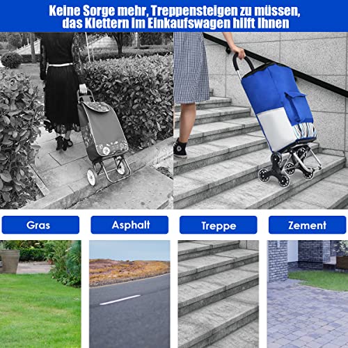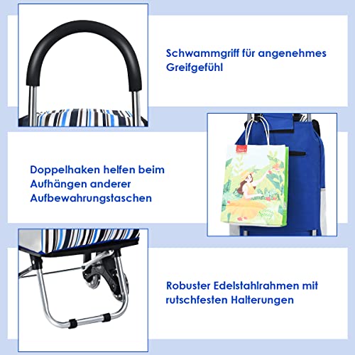 【Benutzerfreundliches Design】Der Einkaufstrolley ist massiv praktisch. Der hochwertige Oxfordstoff ist wasser- und verschleißfest. Ihnen wird im Inneren massenweise Platz Lebensmittel usw. geboten. Zudem sind die Seitentaschen und der Reißverschluss massiv praktisch.