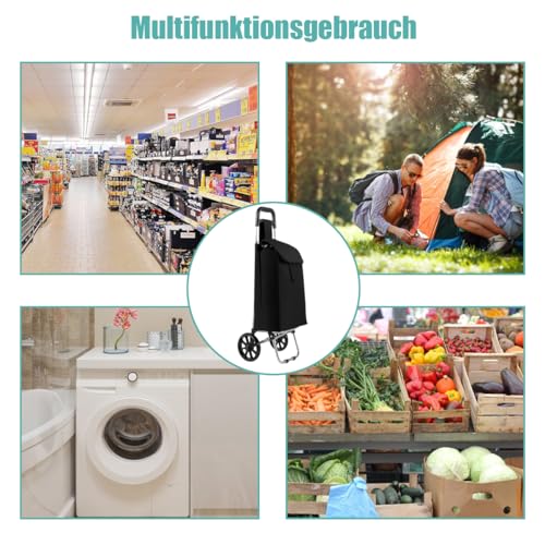 【Hochwertige Materialien】Das Gestell von Einkaufstrolley jeder robustem Stahl ermöglicht eine lange Lebensdauer. Die Einkaufstasche ist jeder Oxford-Tuch hergestellt, wasserdicht und robust.