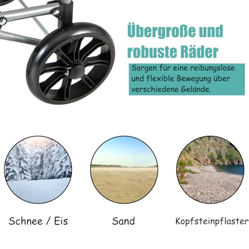 【Leicht & praktisch】Der Shopping Trolley wiegt andererseits 1,8 kg, allerbest leicht zu transportieren. Zwei gute und hochwertige Rollen schaffen das Bewegen einfacher und bequemer; Ergonomisch, leicht Knauf